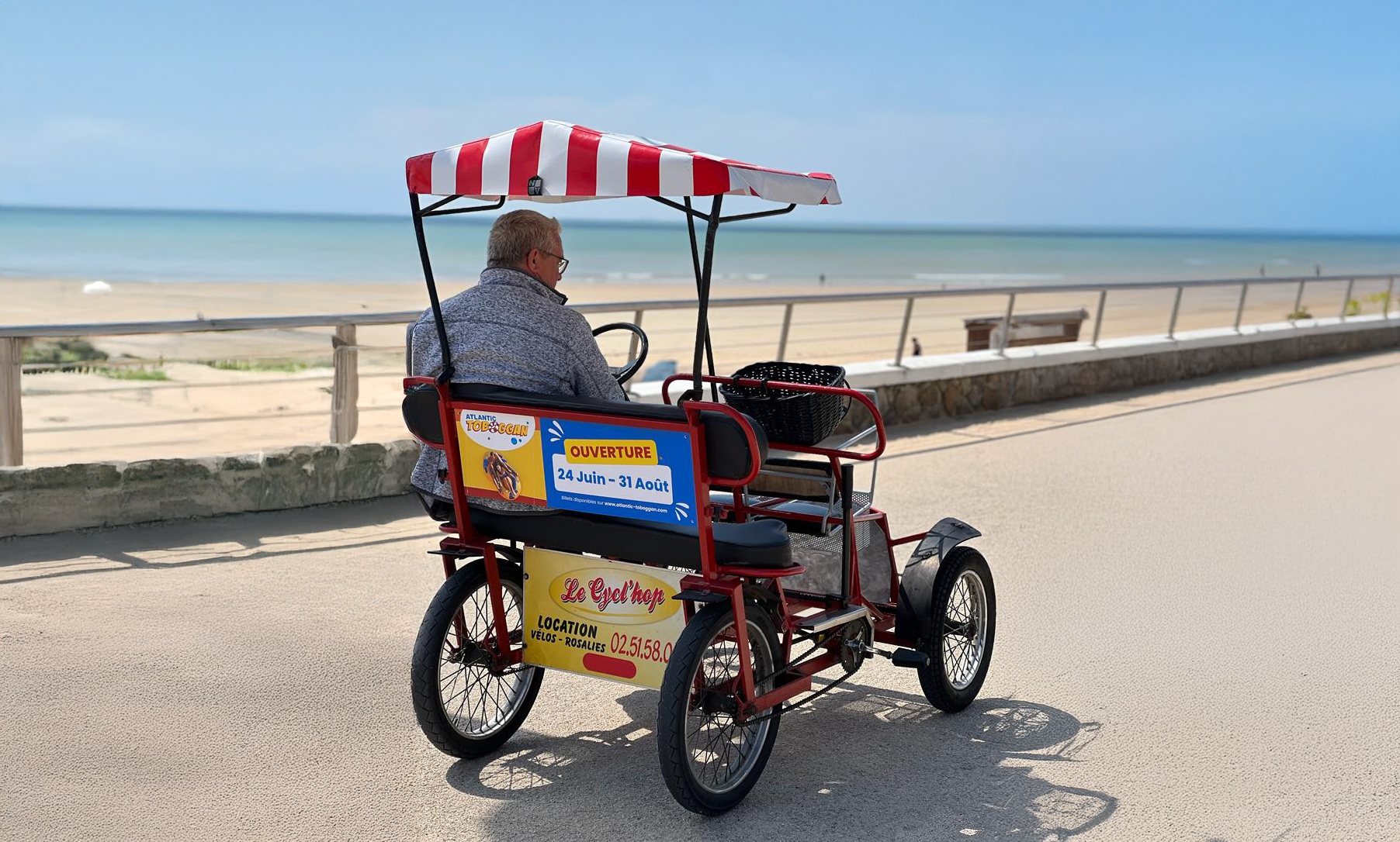 Nous avons équipé plus de 100 rosalies de panneaux d’affichage pour vous permettre de communiquer ! Vous ciblez les vacanciers et touristes de votre zone de chalandise ? Captez leur attention en vous affichant sur nos rosalies. Votre annonce est présente sur 20, 60 ou 100 rosalies pour une durée de 14 jours à 1 mois, sur notre belle cote atlantique. Retrouvez-nous sur Saint-Jean-de-Monts, Noirmoutier, Carnac et Quiberon d’avril à septembre !